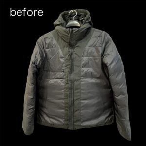 ダウンの場合生地が破れてしまうと着用が出来ないので注意が必要です。それでも破れて補修が必要な場合はダウン生地の破れ補修にて対応可能です。