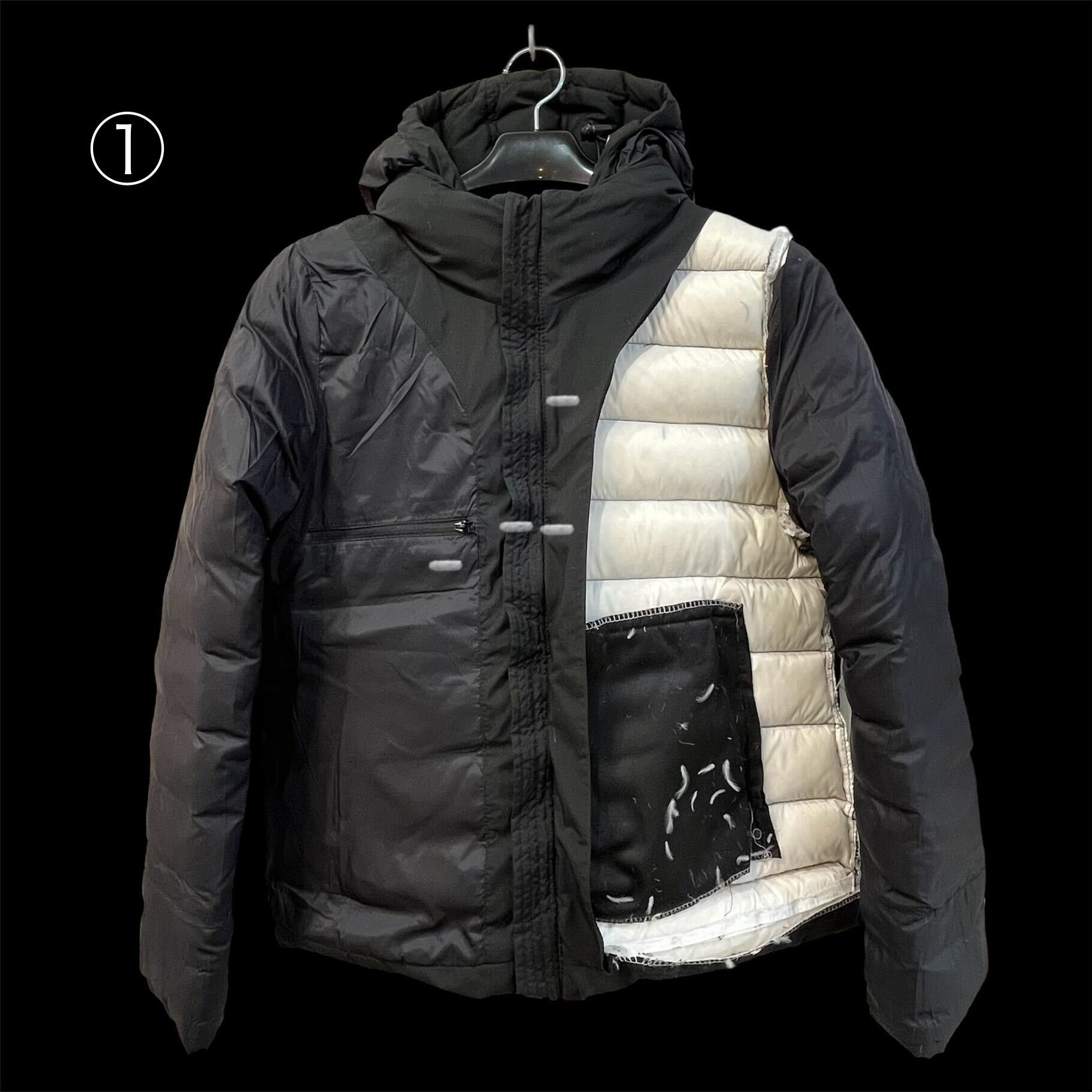 PYRENEXダウンジャケットの裏地部分張り替えのご紹介です。